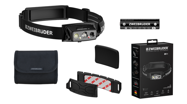 - Lieferumfang ZB9H Stirnlampe, 21700 Akku, Integriertes USB-C Ladekabel, Helmhalterung, Comfort pad, Tasche